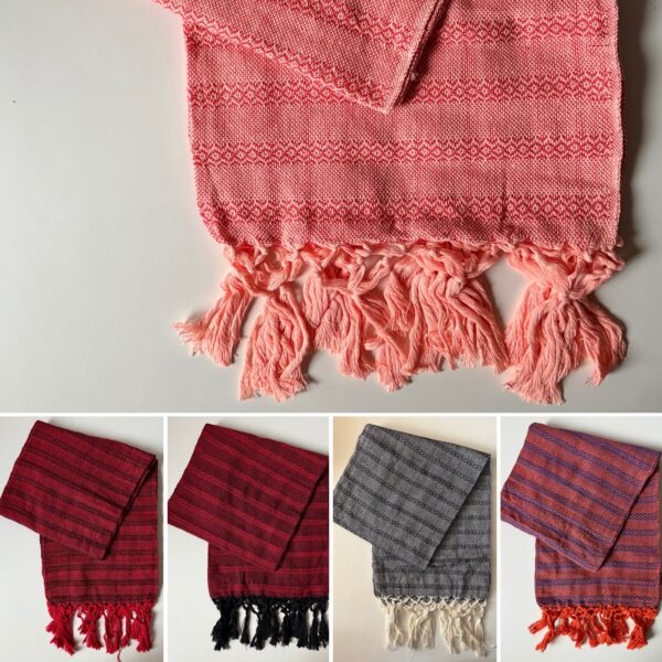 Rebozo – meksykańskie szale Mariposa (motyl). W opisie koloru pierwszy człon to kolor osnowy – frędzli (np. biało-czarne oznacza, że to rebozo ma białe frędzle i wzory w kolorze czarnym).